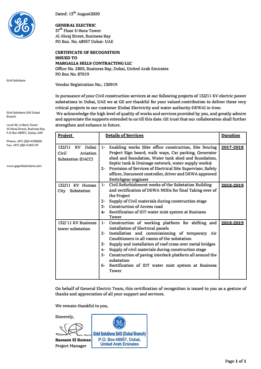 Contact Margalla Hills Contracting LLC.